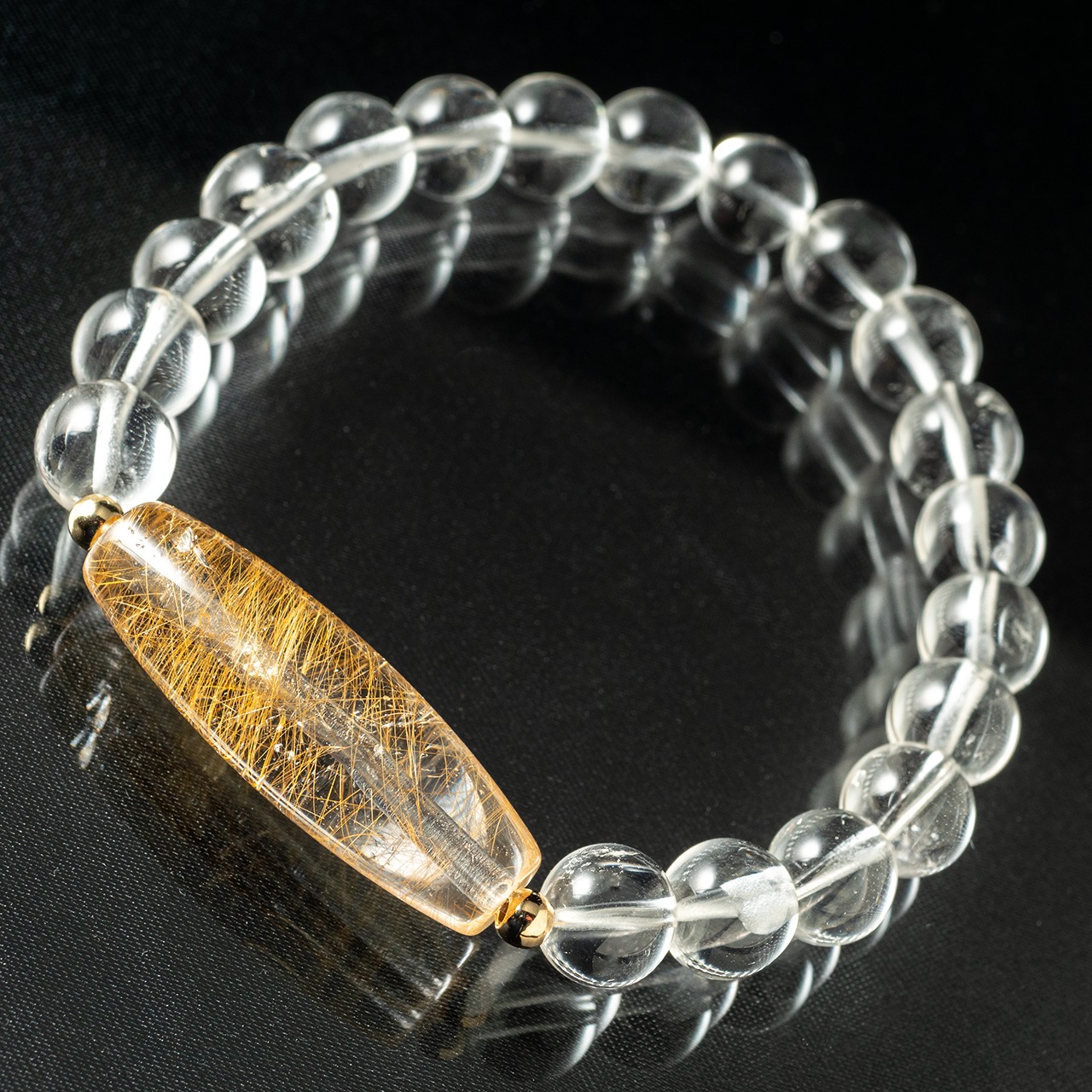 マニハール産 ヒマラヤ水晶 ブレスレット ゴールドルチル入天珠 天然石 パワーストーン