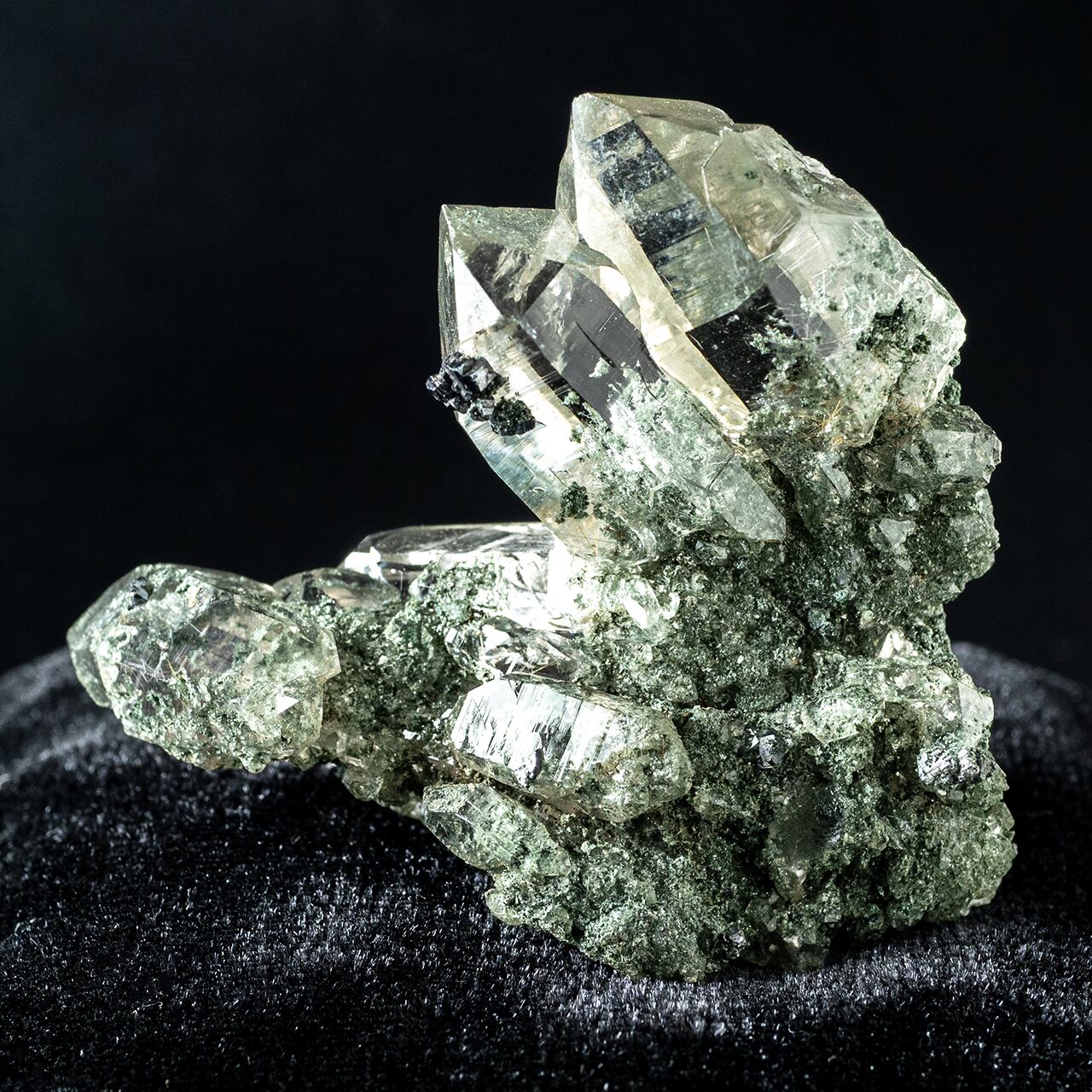 ヒマラヤ水晶の中でも、その美しさと希少性で人気の高いガネーシュヒマールにもクローライトが含まれています。