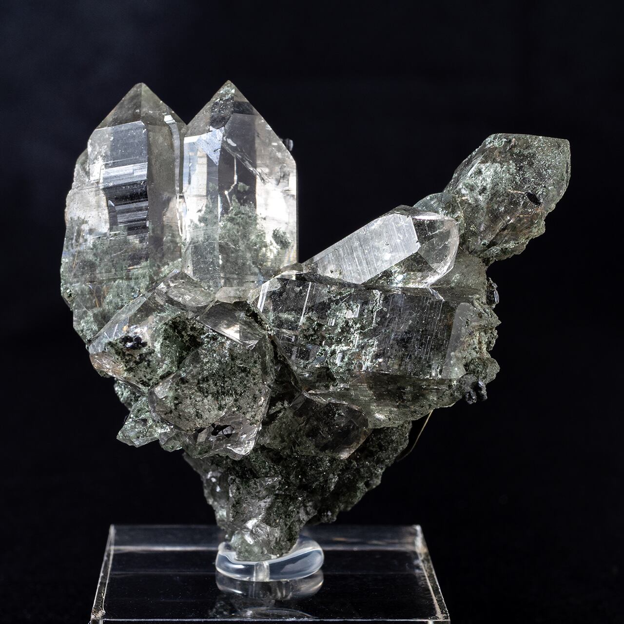 標高5,000メートル以上の山でしか採取出来ないヒマラヤ水晶の特徴であるクローライト(緑泥石)が、水晶の美しさを更に引き出しています。