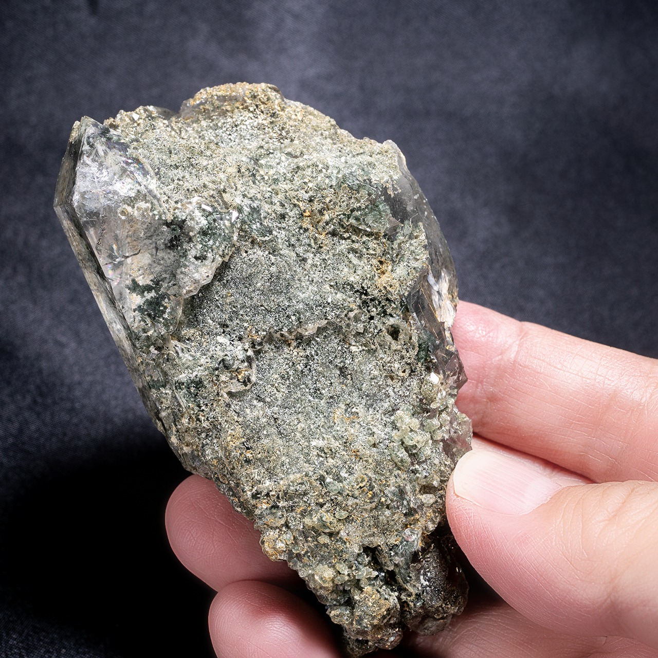 ヒマラヤ水晶の中でも、その美しさと希少性で人気の高いガネーシュヒマールにもクローライトが含まれています。