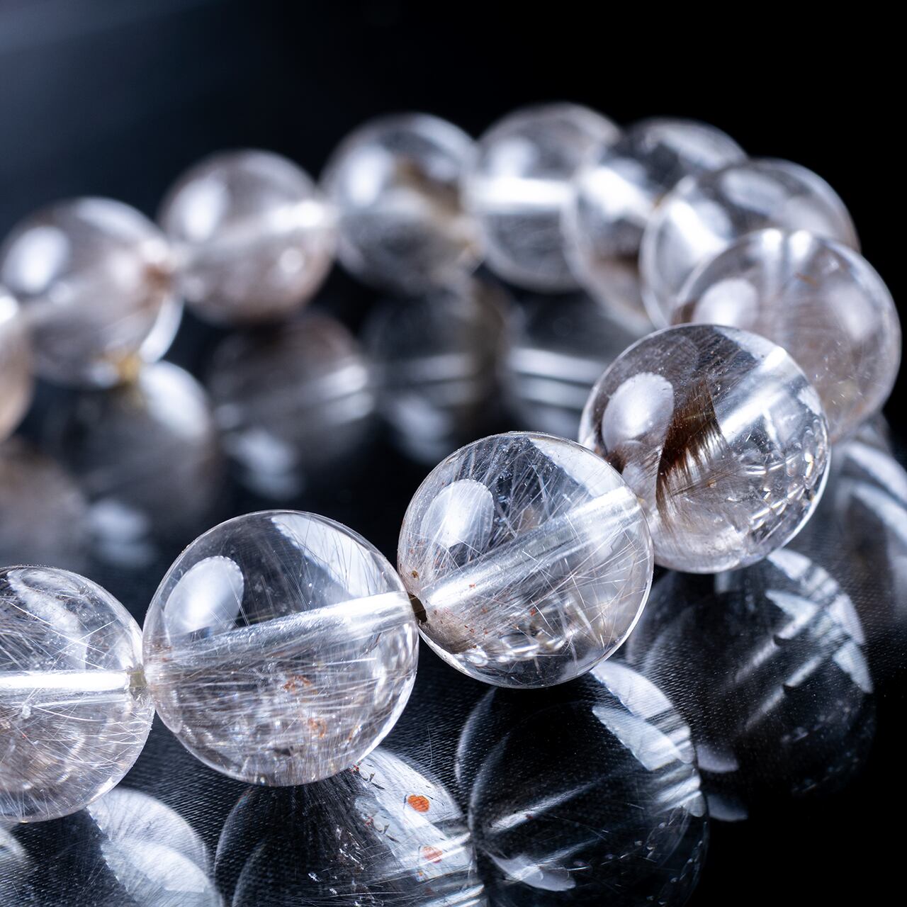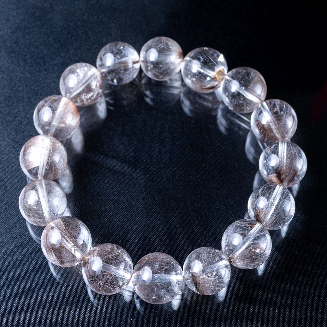 プラチナルチルクォーツ ブルッカイトインクォーツ プラチナクォーツ ブレスレット 13.5mm 高品質 天然石 パワーストーン