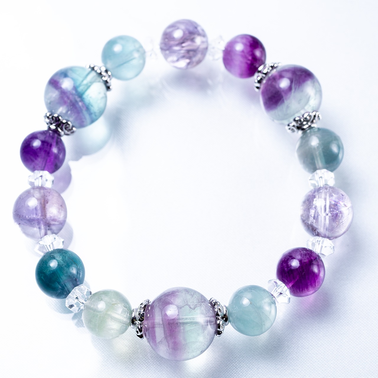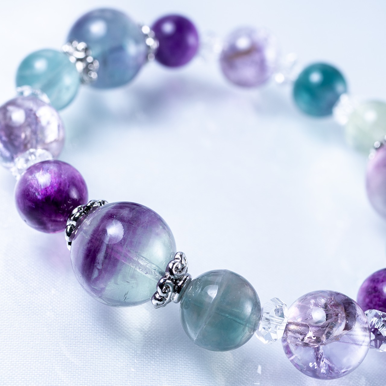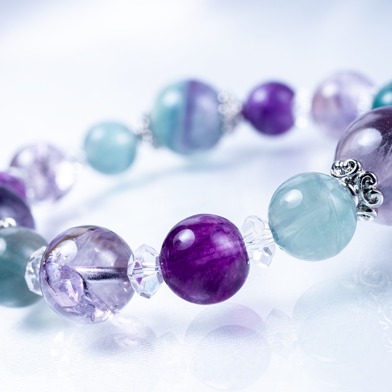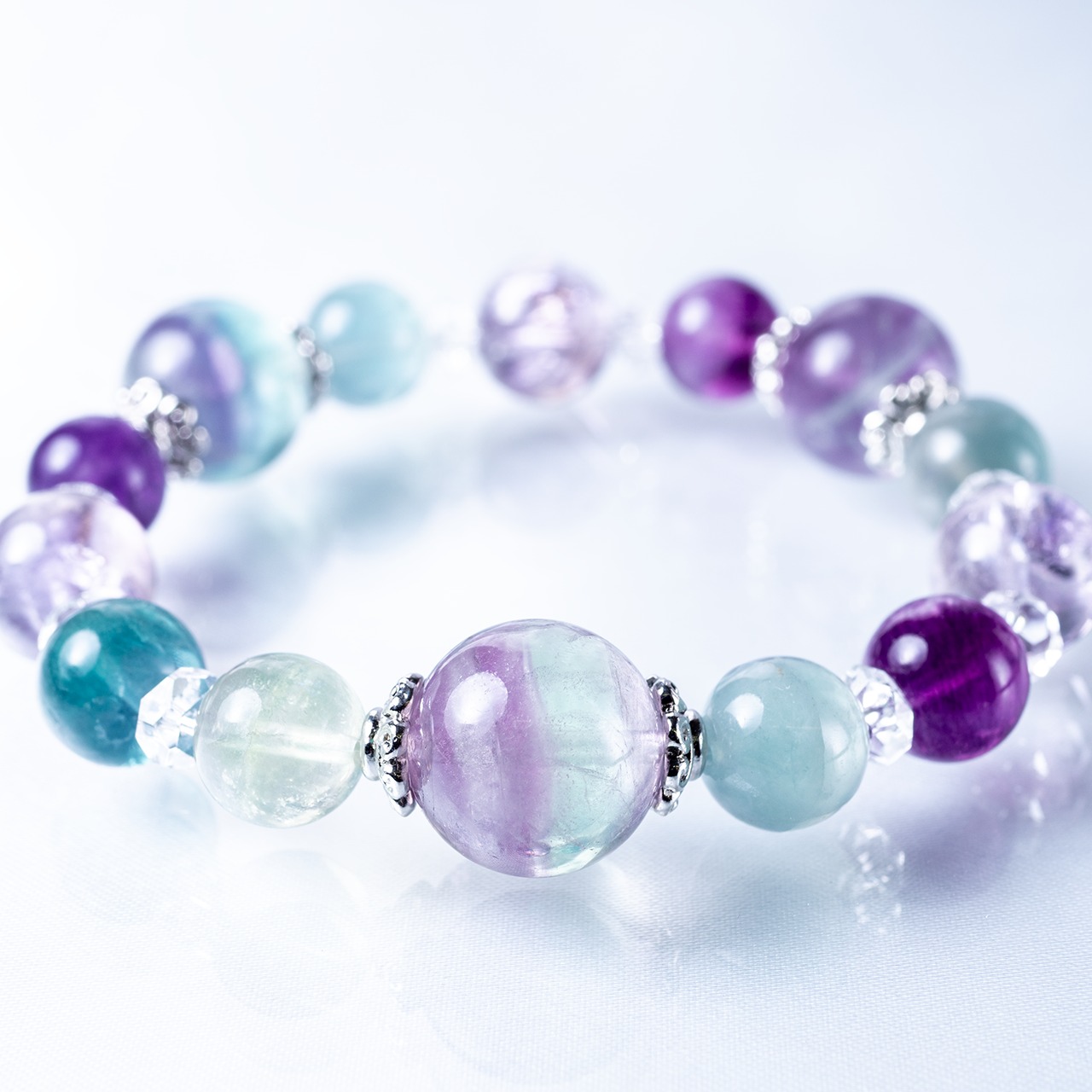 ※一つの石の中に複数の色が混ざっている「レインボーフローライト」もあり、総合的なバランス力が魅力です。