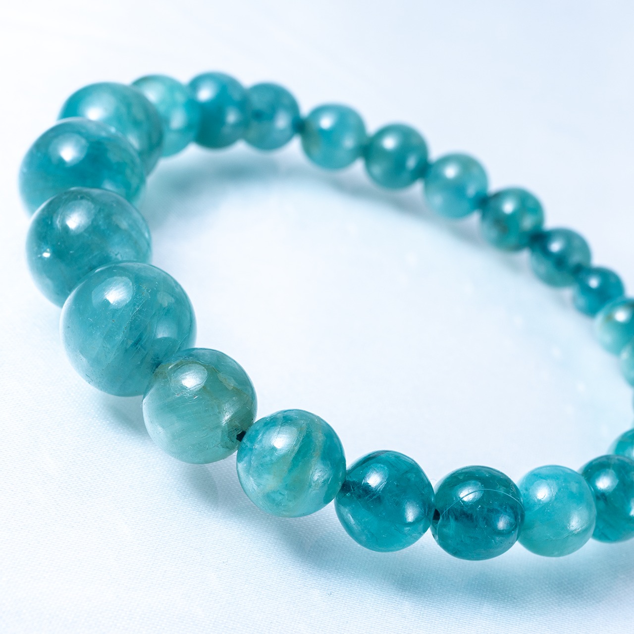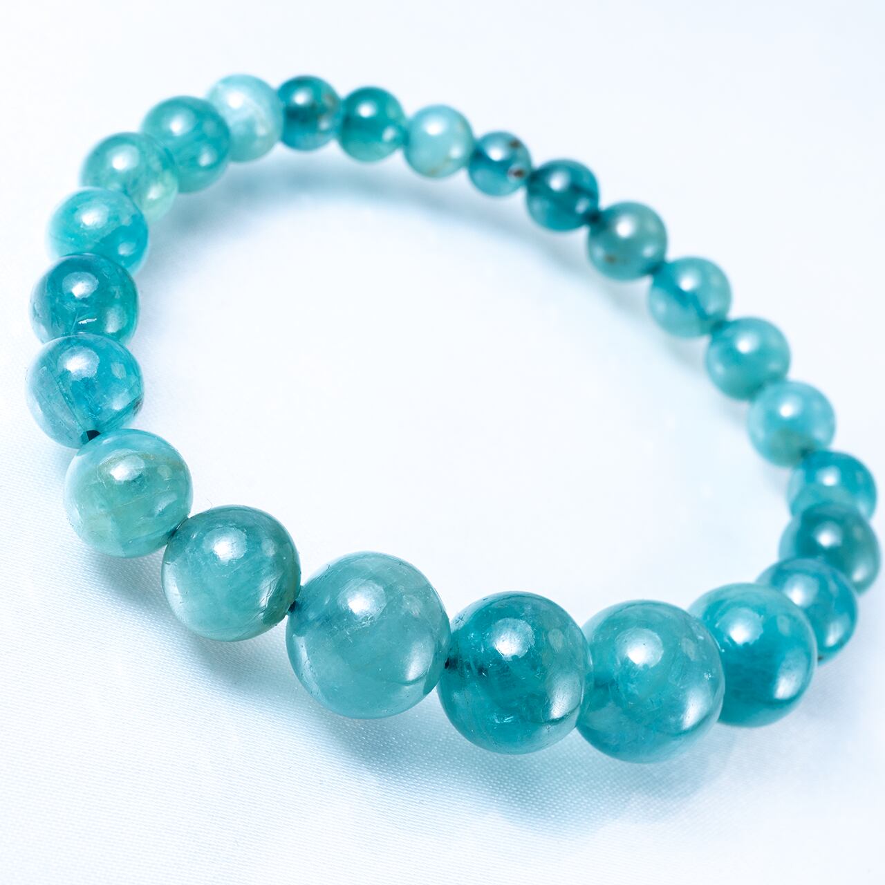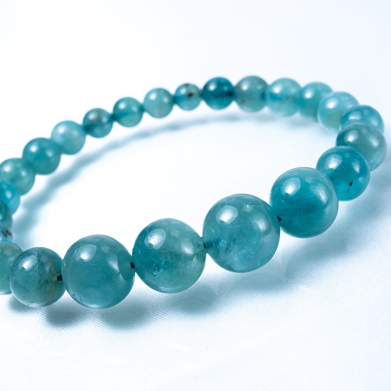 こちらのブレスレットは、11.5〜6mmサイズの丸玉をバランス良く綺麗に並べた立体感あるデザイン。