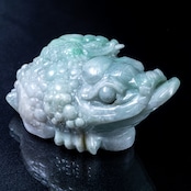 翡翠で彫られた三本足の蛙(三脚蟾蜍...さんきゃくせんじょ)は、中国風水において古くから伝わる強力な金運・財運の象徴です。