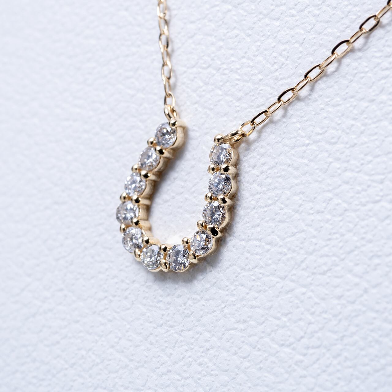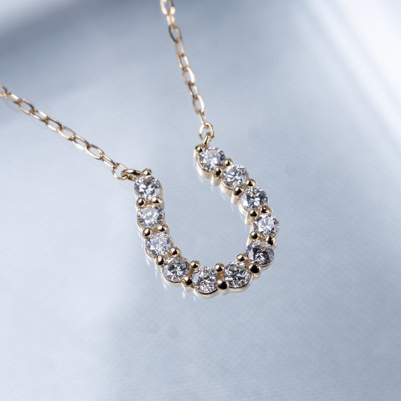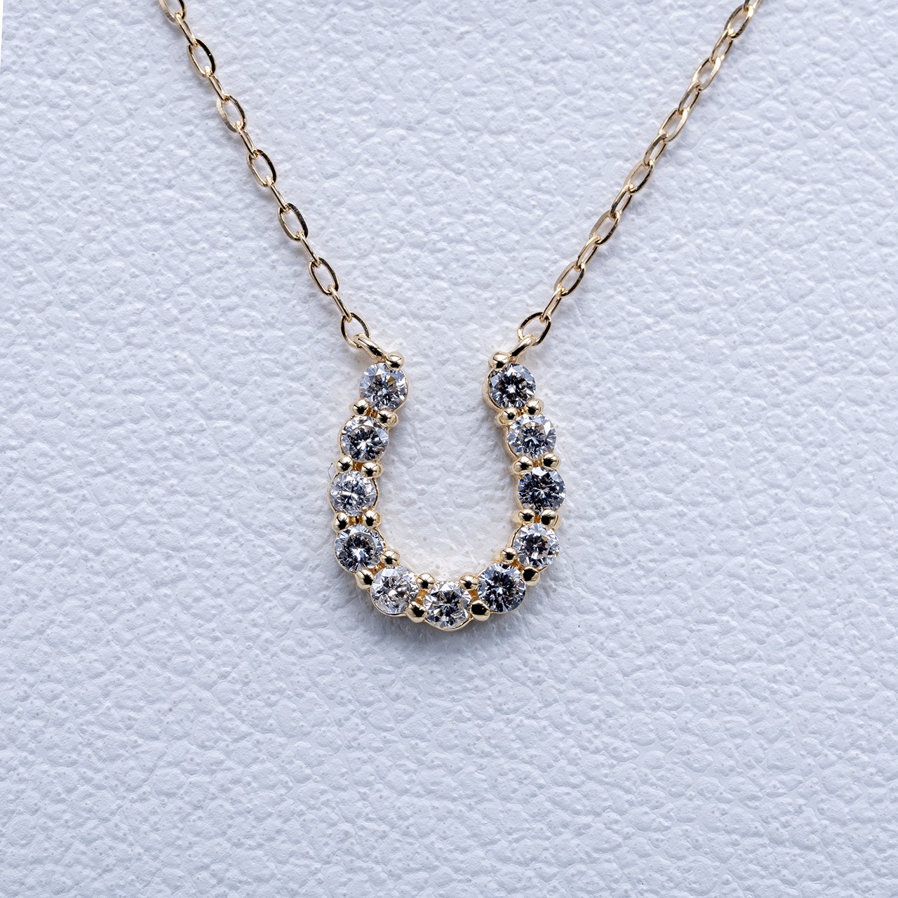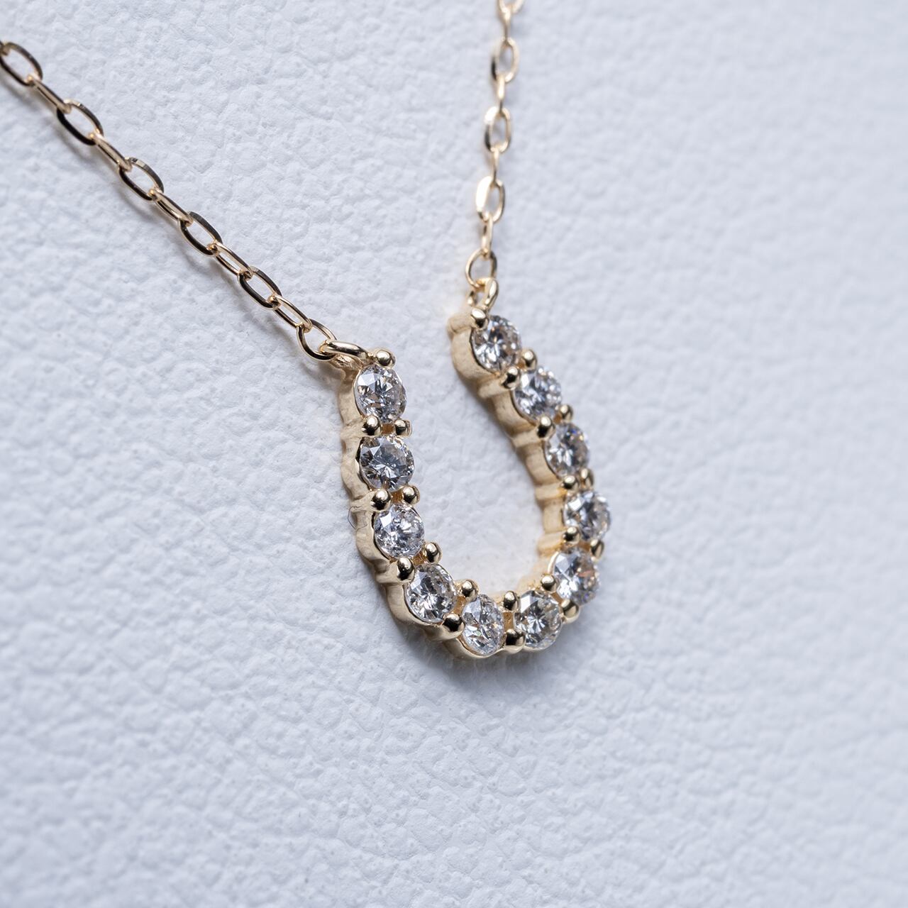 ダイヤモンドK18蹄鉄型ペンダントトップは、幸運・強さ・美しさを同時に身につけることができるジュエリー。