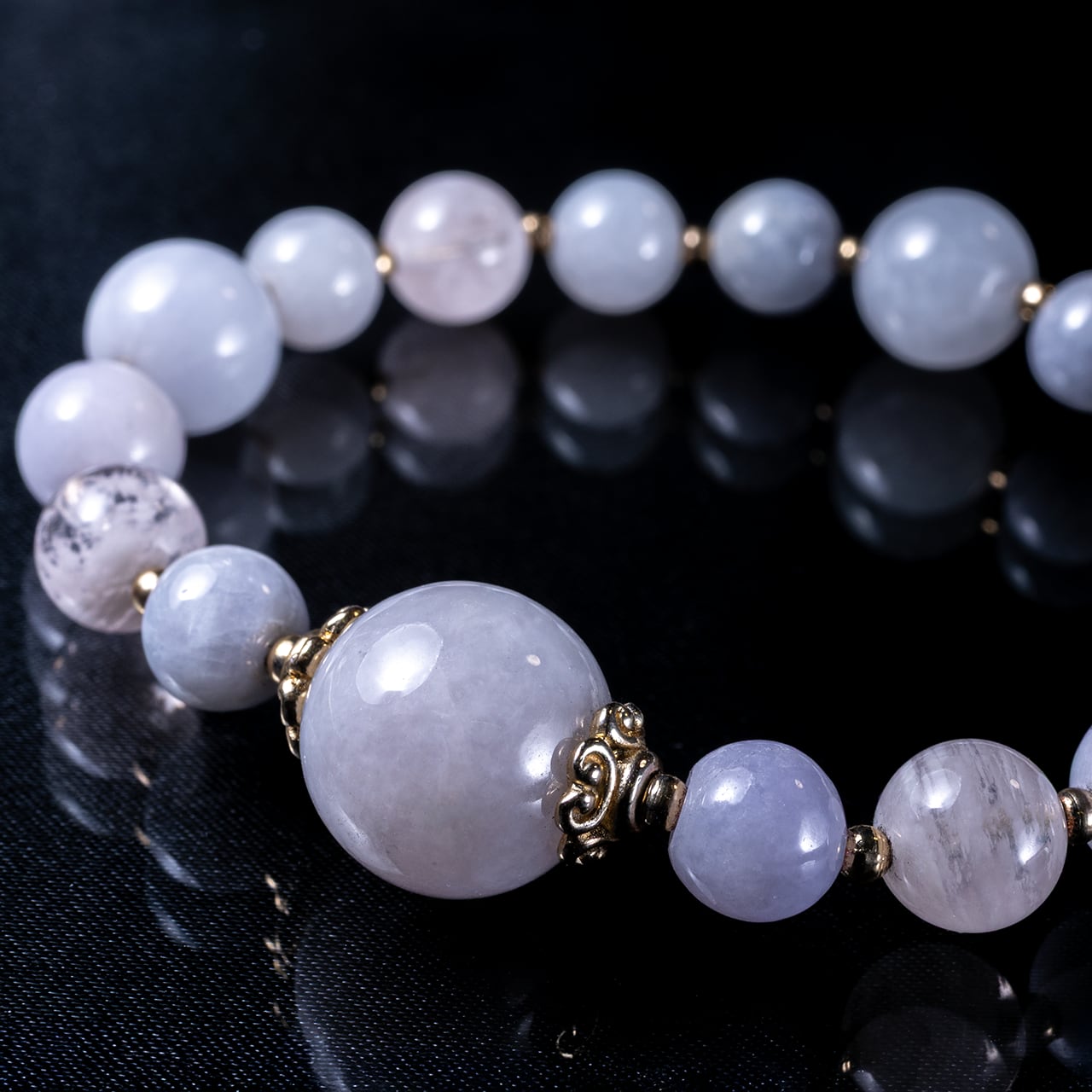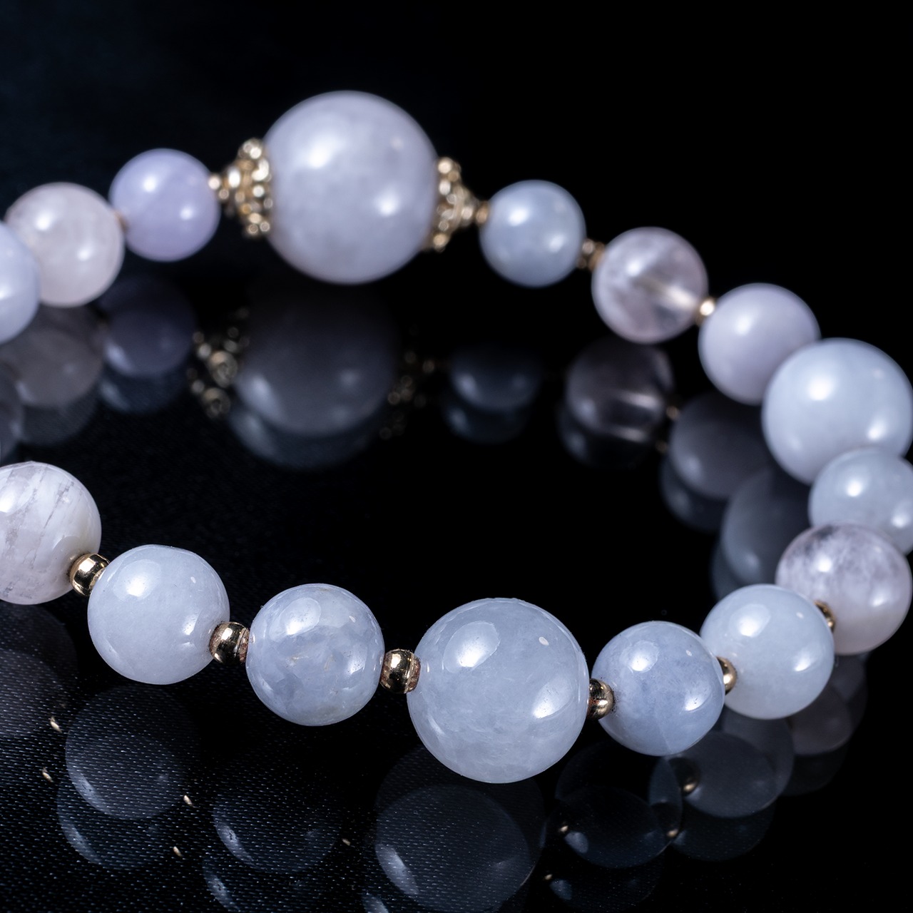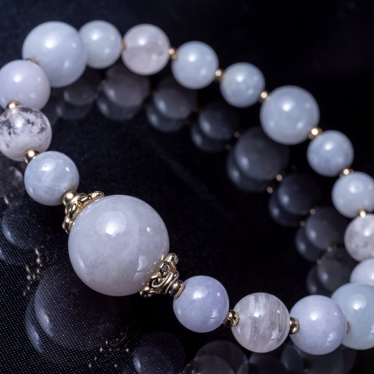 やさしく心を包み込むラベンダー翡翠と、内なる叡智を呼び覚ますセリサイトインクォーツ。