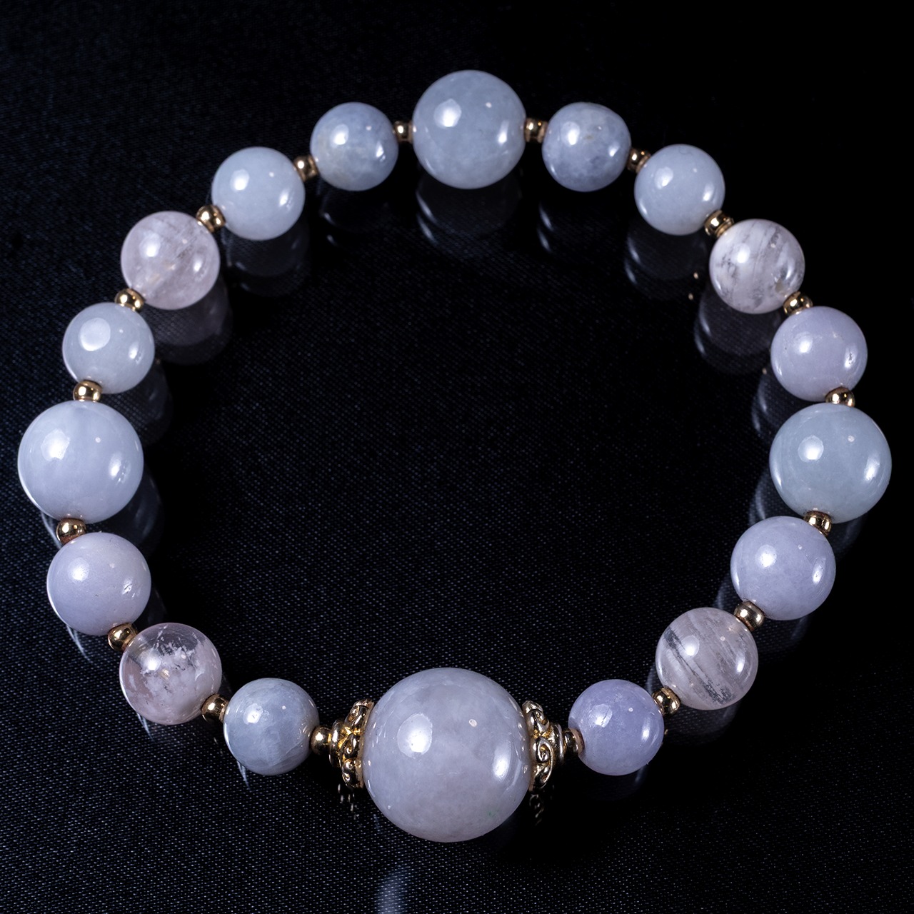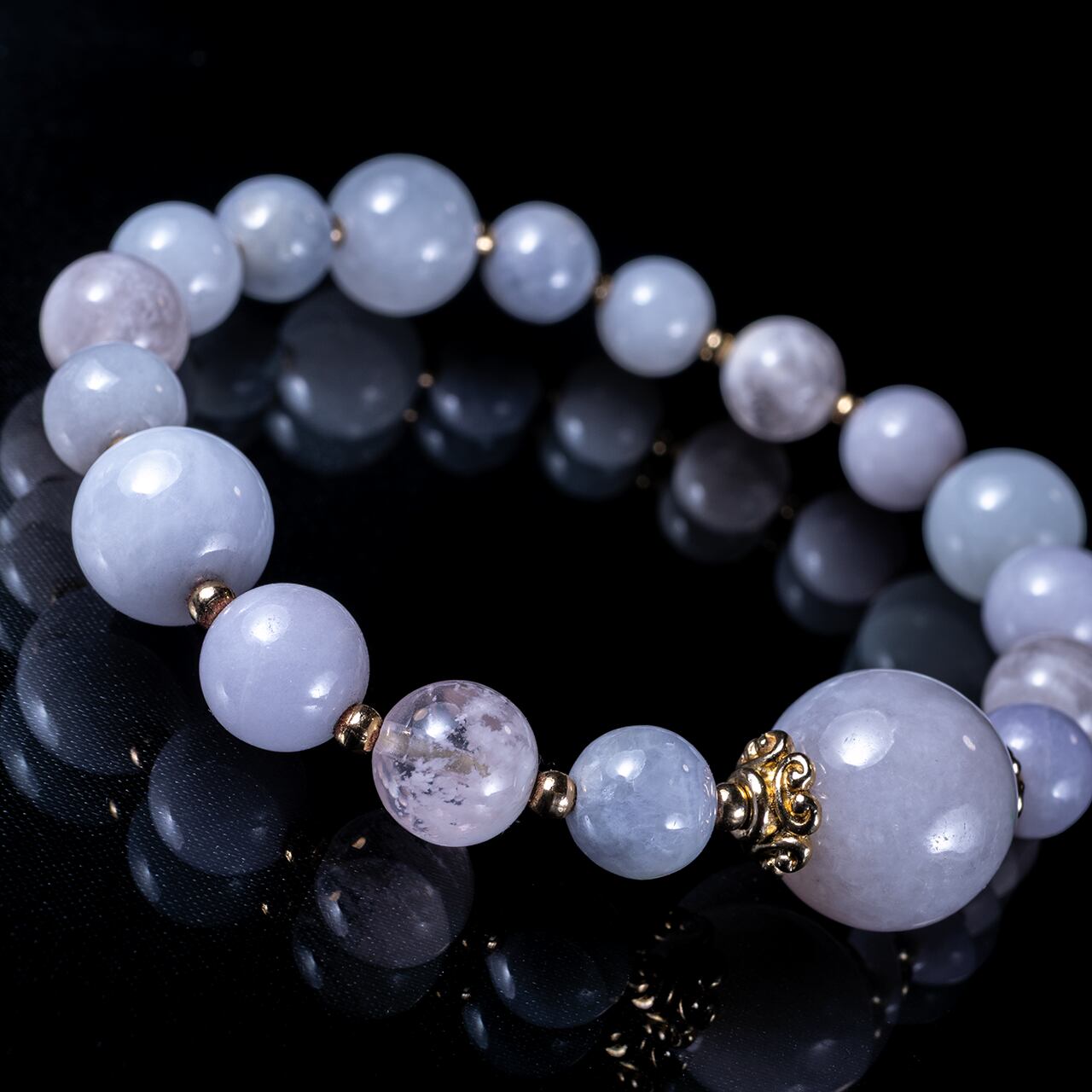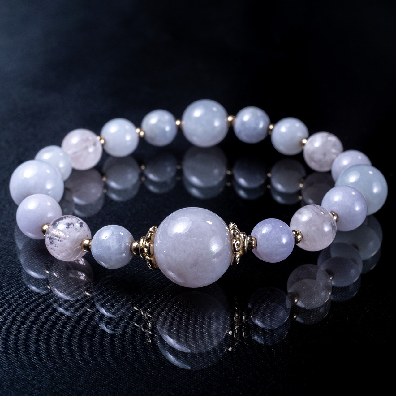 やさしく心を包み込むラベンダー翡翠と、内なる叡智を呼び覚ますセリサイトインクォーツ。