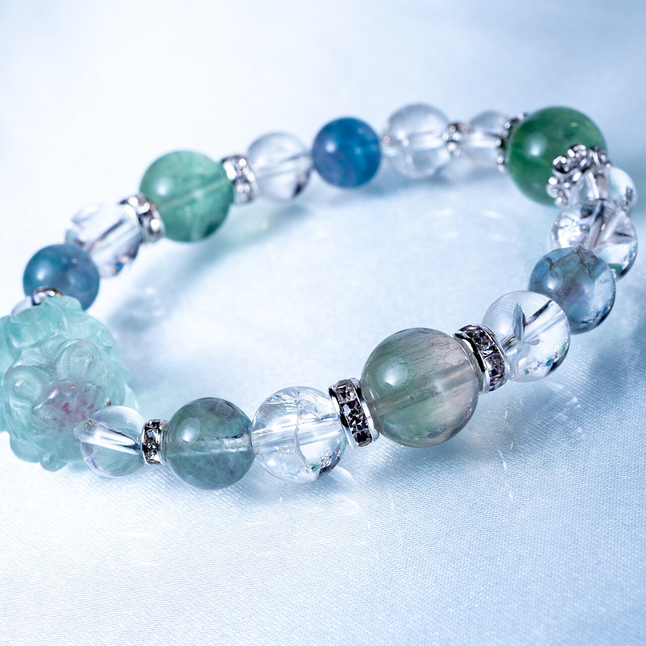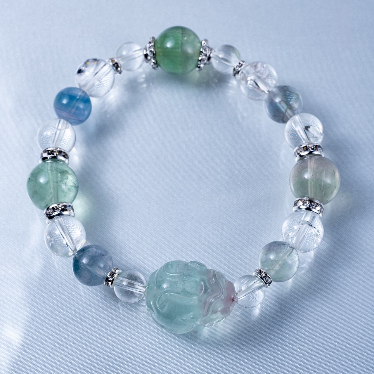 t0485【調和と繁栄の守護石】フローライト貔貅 水晶 アイリスクォーツ フローライト オリジナルデザイン ブレスレット パワーストーン 天然石